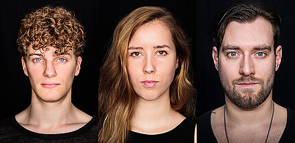Unsere Absolventen Niklas Doddo, Stefanie Alder und Marvin Münstermann – Fotos: Filmschauspielschule Berlin